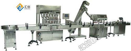 自动灌装、上盖、旋盖、贴标、喷码、装箱封箱等包装工艺。