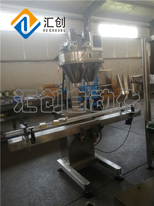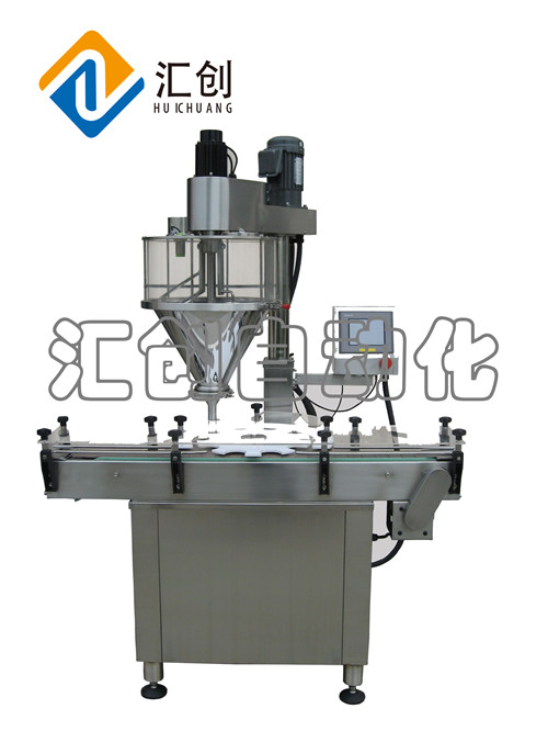 该机是一款经济实用的粉末及小颗粒自动灌装机,能完成瓶子自动定位、充填及计量等工作,它由一台螺杆计量机、一台链板输送带及一个气动定位装置组成,可与理瓶机、旋盖机、贴标机等组成整套灌装流水线。适用于包装粉末、小颗粒药品、奶粉、兽药、调味品、粉粒状添加济、葡萄糖、固体饮料、爽身粉、农药等。