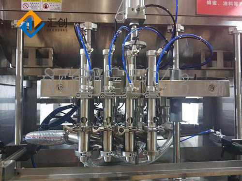3,配置2-14组防滴漏升降式灌装头及接漏盘(解决灌装结束物料滴漏问题)。