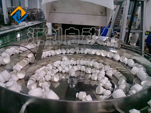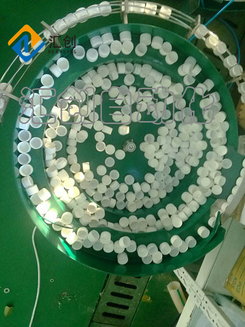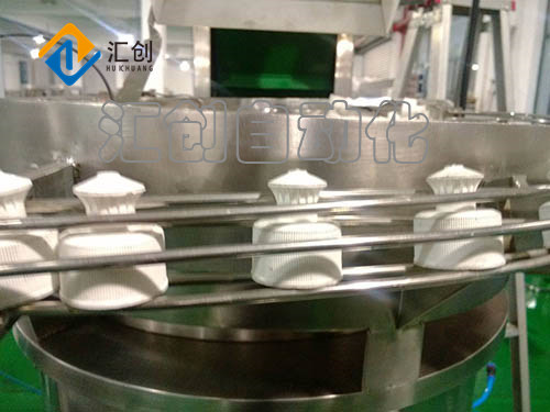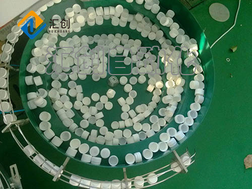7、对瓶盖进行整理,使之同向(口向上或向下)输出。将瓶盖输入到理盖机内。
